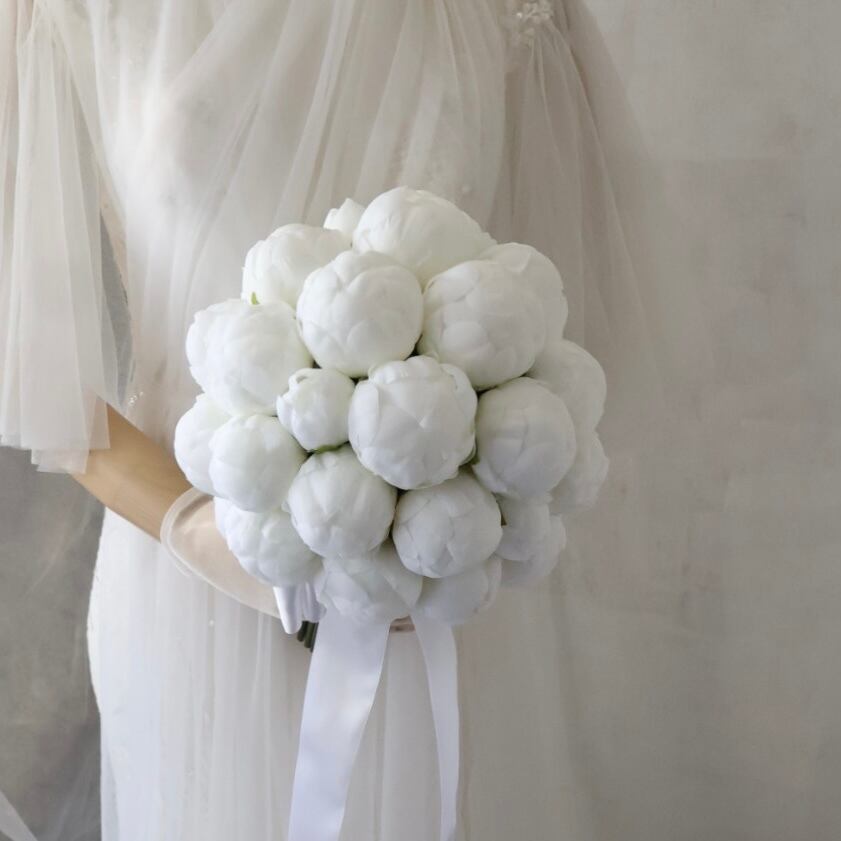 ボリュームたっぷり白芍薬つぼみブーケ ラウンドクラッチブーケ