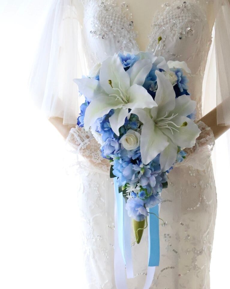 キャスケードブーケ ブルーブーケ 前撮りブーケ 造花